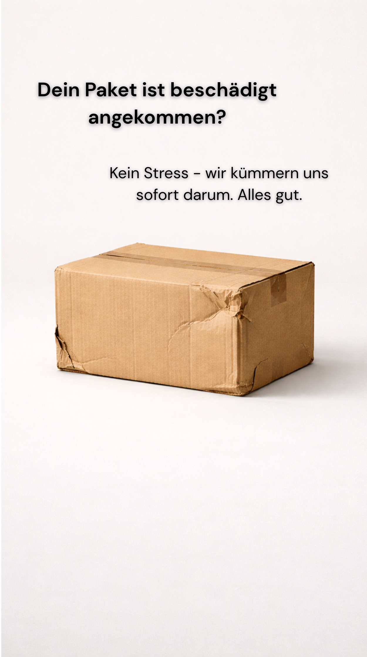 Sag uns kurz Bescheid, wenn dein Paket beschädigt angekommen ist. Wir prüfen den Fall und melden uns mit den nächsten Schritten.