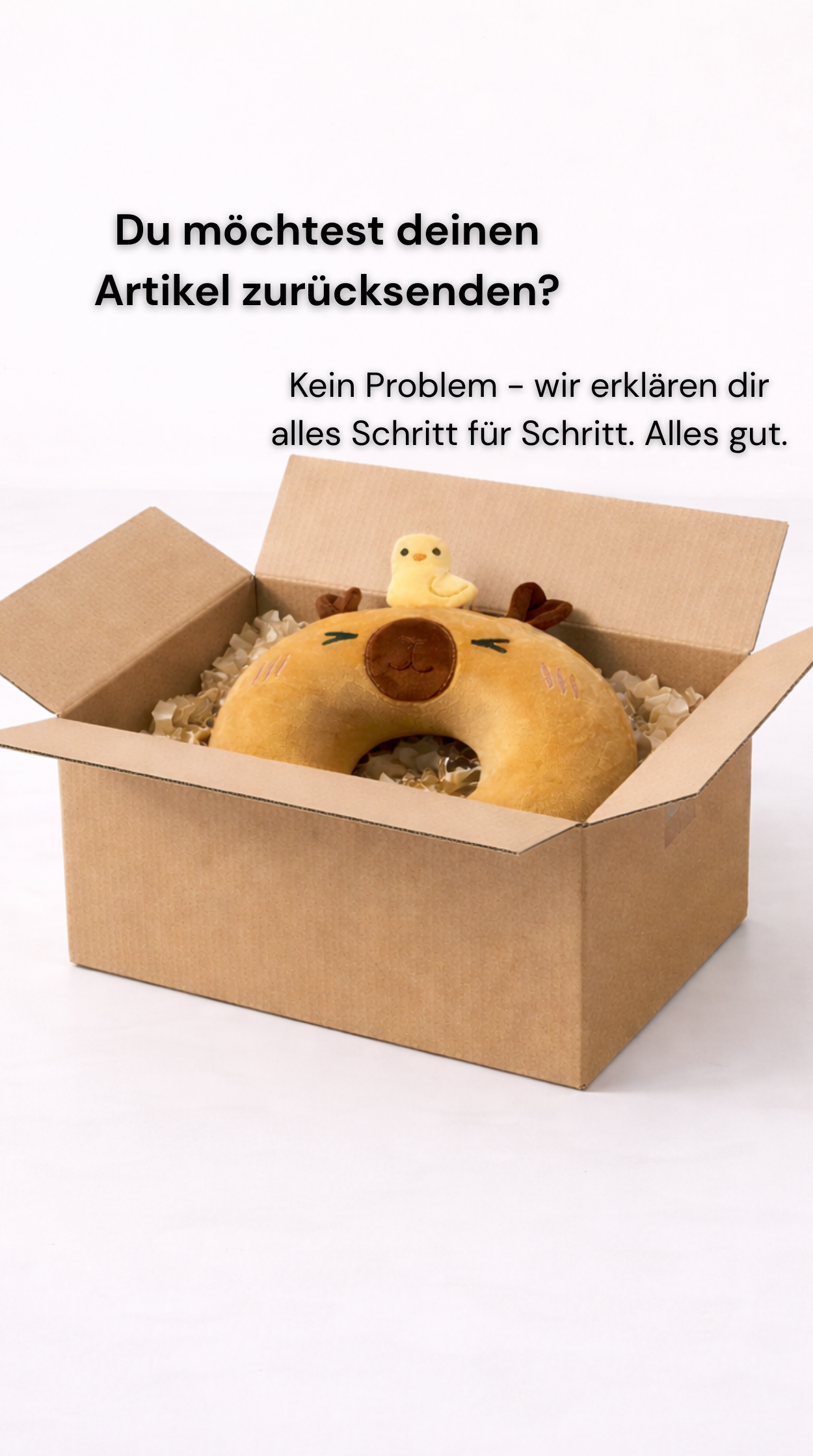 Wenn etwas nicht passt oder du dein Produkt zurückgeben möchtest – wir kennen das. Reiche hier ganz einfach deinen Widerruf ein. Der Prozess ist unkompliziert und dauert nur wenige Minuten, den Rest übernehmen wir für dich.